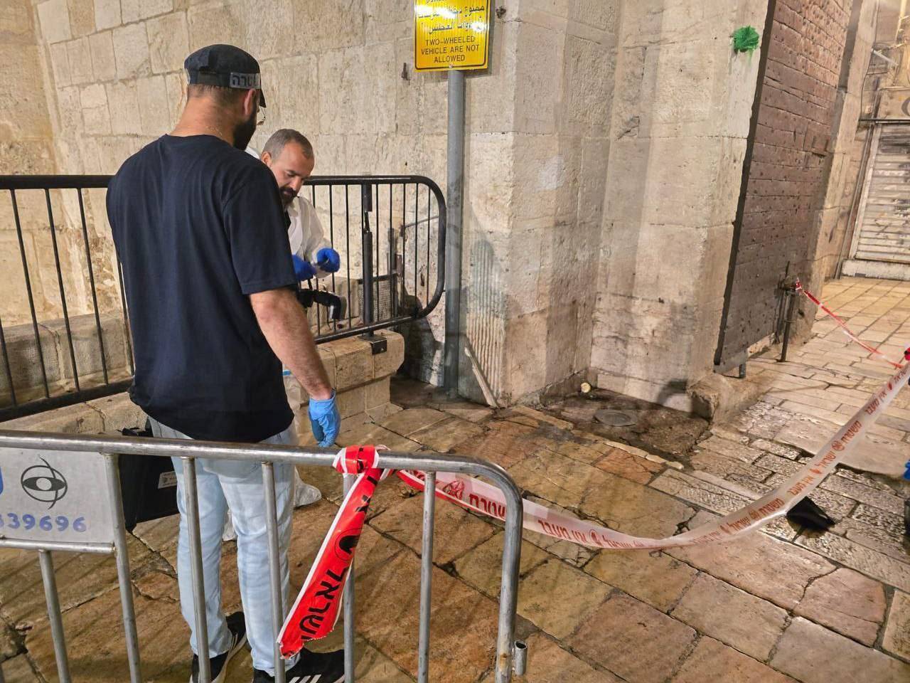 من مكان عملية الطعن في القدس - وسائل التواصل