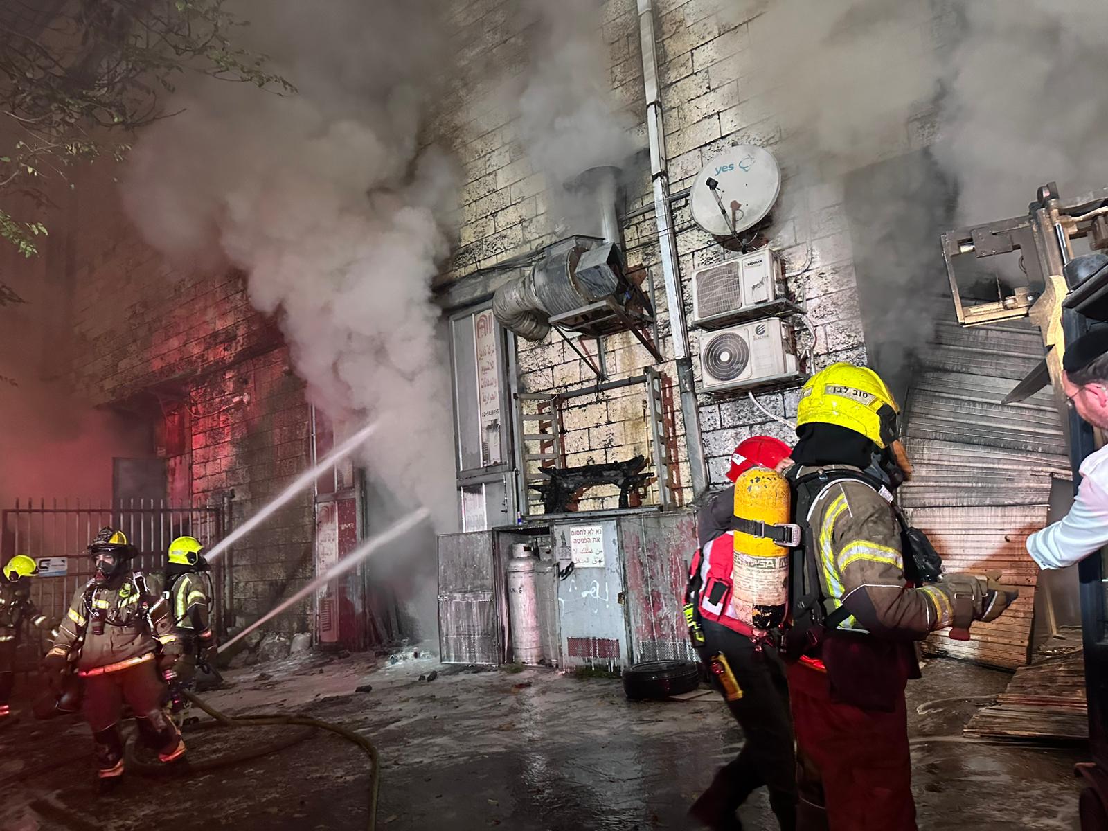 اندلع حريق ضخم، مساء اليوم السبت، في كراج بالمنطقة الصناعية لعطروت شرق القدس.